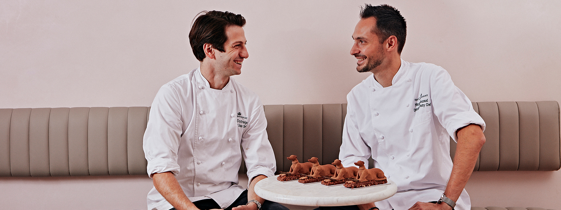 Our much loved Connaught hound which graces the hotel emblem, has been reimagined as a chocolate hazelnut cake. This miniature work of art will be a patisserie signature, available to take away or feast on at the Patisserie.